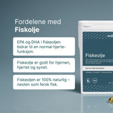 Wellvita Fiskeolie inneholder omega-3-fettsyrene DHA og EPA og er 100 % naturlig: Du får alle oljene fra fisken. DHA bidrar til å opprettholde en normal hjernefunksjon og normalt syn. Den gunstige virkningen oppnås ved et daglig inntak på 250 mg DHA. EPA og DHA bidrar også til hjertets normale funksjon, den gunstige effekten oppnås ved et daglig inntak på 250 mg EPA og DHA.